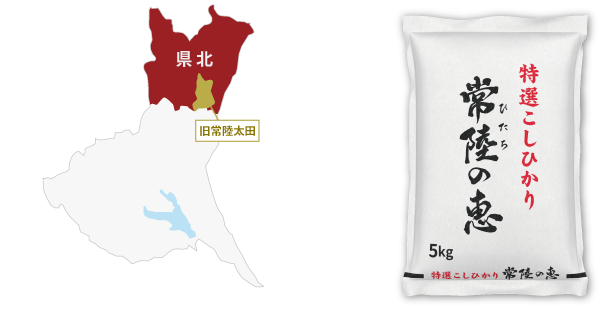 阿武隈山麓の南端に位置する茨城県北地域は、自然豊かな風土と清水に恵まれ、県内でも随一の良質米の産地でもあります。