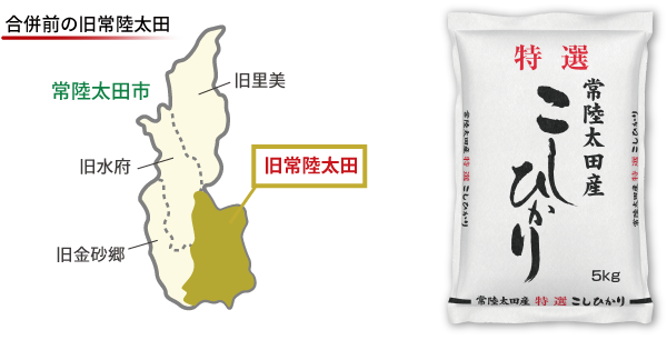 弊社の人気商品である「 特選こしひかり 」 は合併前の旧常陸太田の地域限定で収穫されたこしひかりを使用しています。